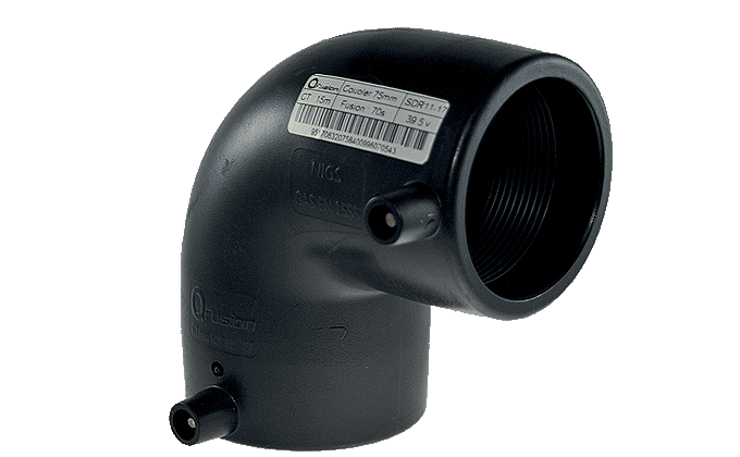 زانویی الکتروفیوژن پلیاتیلن با زوایای ˚90 جزو اتصالات پرکاربرد بوده که به صورت گسترده تولید میشوند و برای اتصال لولههای پلیاتیلن به دیگر لولهها کاربرد دارند.